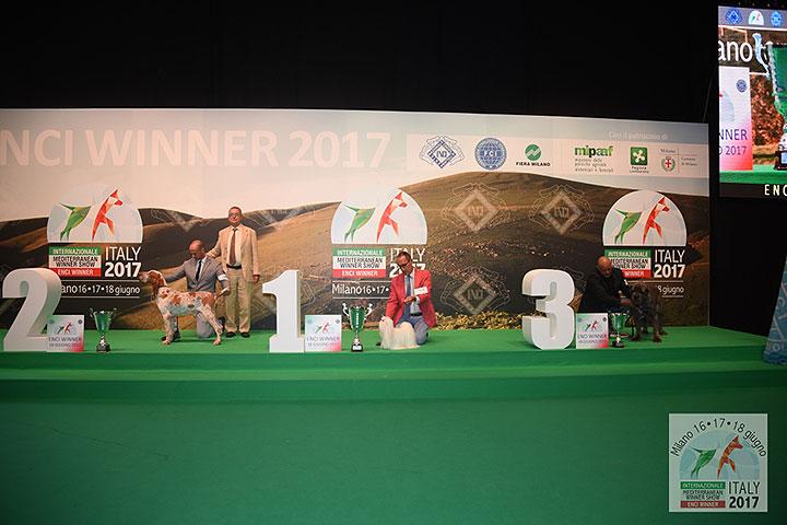 Sono stati tanti i cani che hanno sfilato nel ring d’onore, ma tra tutti i Best in Show ce n’è uno che va assolutamente menzionato: quello delle razze italiane, che sono davvero un orgoglio nazionale. Primo posto, indiscusso (ha vinto il titolo di miglior soggetto italiano tutti e tre i giorni, giudicato quindi da ben nove giudici diversi) per il Maltese Cinecittà Sagro Gra di proprietà del signor Franco Prosperi, al secondo posto Polcevera’s Ponente, Bracco Italiano del signor Maurizio Turci e al terzo posto il Mastino Napoletano Bagheria Lagrandeombra del signor Antonio Cerciello.
